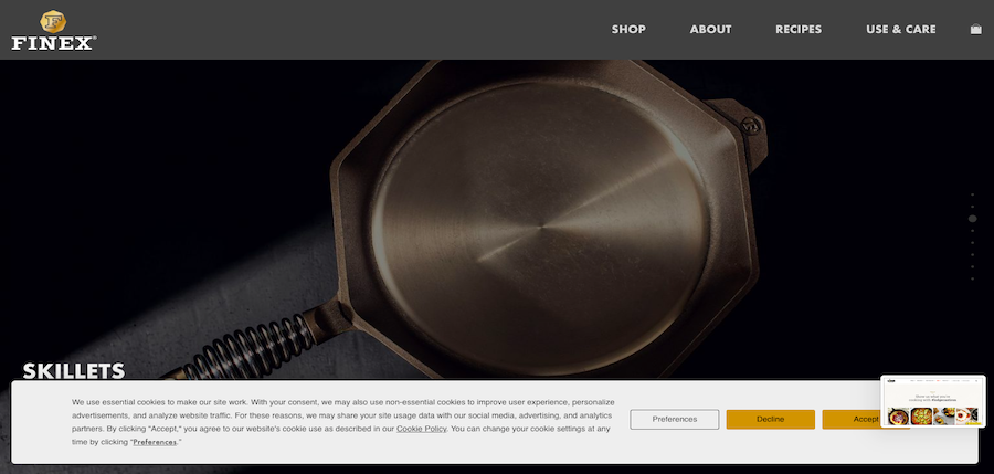 Company Profile:FINEX is a small team of Portland artisans, chefs, and designers dedicated to crafting cast iron cookware that stands the test of time.Their work is inspired by the hard-working history of American cast iron and based on their belief that cooking should be authentic—an experience you cherish and share with others. It's these simple philosophies that guide them to reinvent cast iron cookware with modern designs to improve every chef's life.