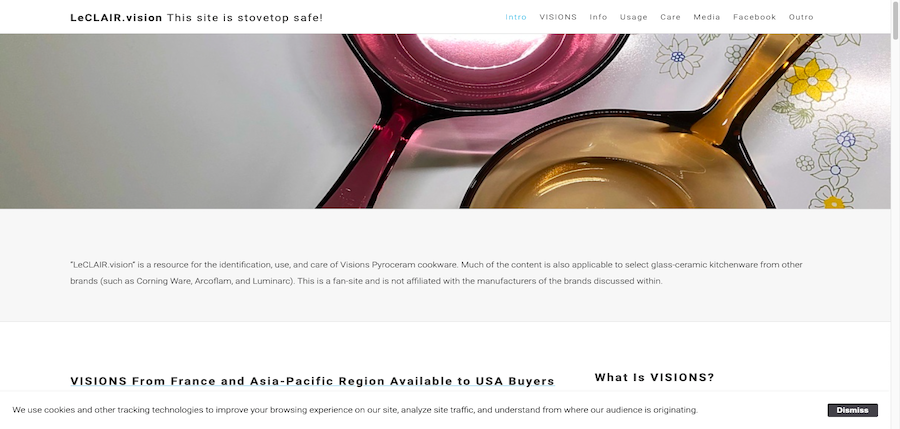 Company Profile:"LeCLAIR.vision", a very professional manufacturer of glass cookware, is a resource for identifying, using and caring for Visions Pyroceram cookware. Much of the content also applies to select glass-ceramic cookware from other brands such as Corning Ware, Arcoflam and Luminarc.