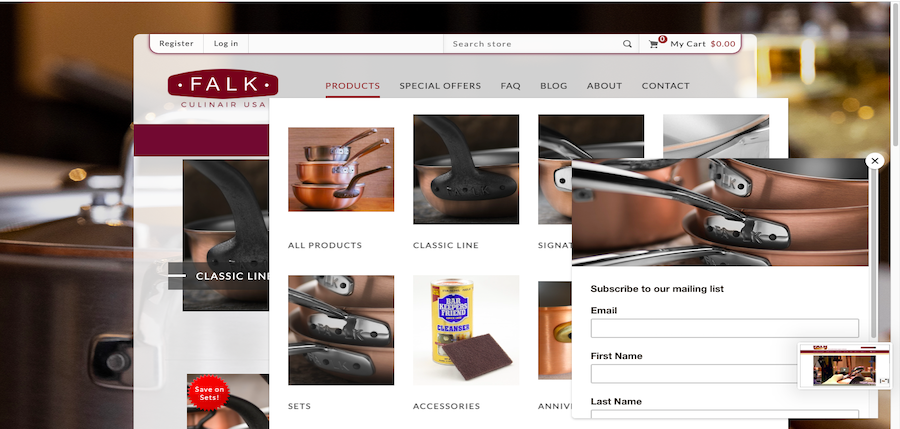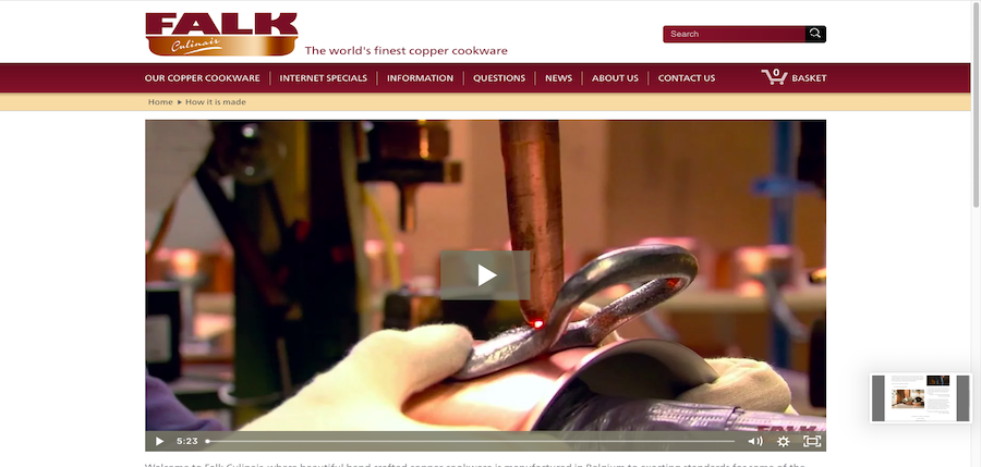 Company Profile:Since 1958, Falk Culinair's mission has been simple: to manufacture premium copper cookware that delivers superior performance, beauty, and ease of maintenance. Falk cookware is handcrafted in Vespera, Belgium by a team with decades of experience in the art of copper fabrication. Falk also pioneered the copper/stainless steel bi-metal - setting the professional standard for the elegance and superior conductivity of copper and the ease of cleaning of stainless steel.