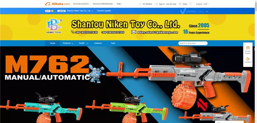 Company Profile:Shantou Nikon Toys Co., Ltd. is a leading manufacturer of toy guns, located in the "China Toy Production Base" and the Toy Gift City...They specialize in the production and export of toy guns, educational toys, toy sports equipment, such as pistols, water guns, building blocks, puzzles and electronic toys.They invent all items from original ideas and they are constantly developing new items. They can also provide OEM and ODM services.